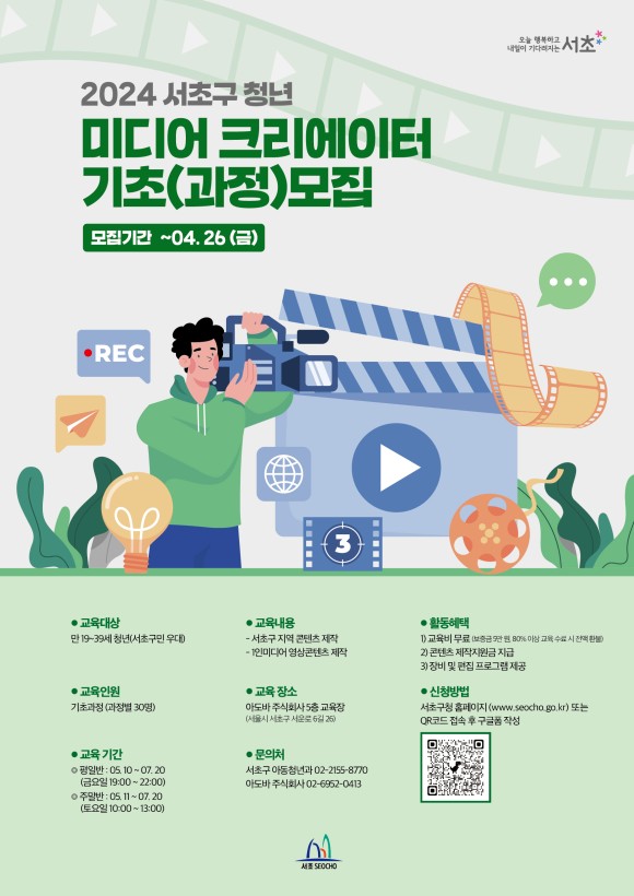 📌 모집 대상 : 영상 콘텐츠 제작에 관심있는 청년 (서초구민 우대)