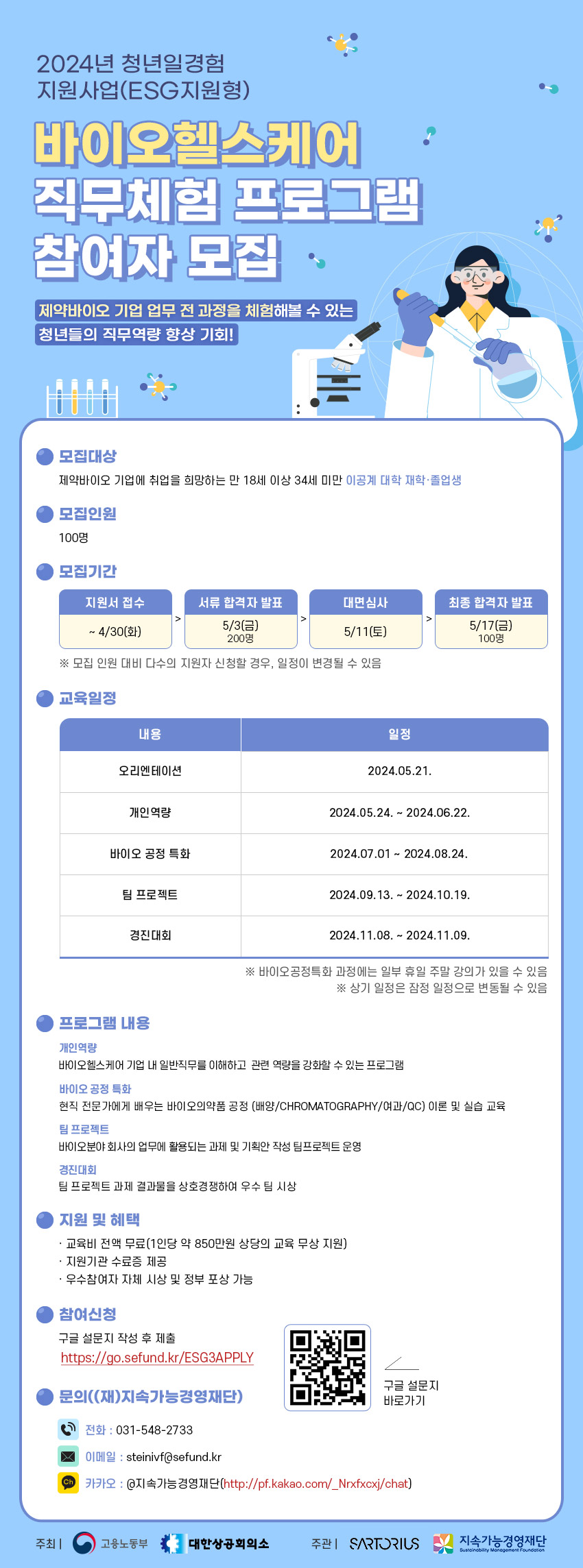 주최: 고용노동부, 대한상공회의소 주관:싸토리우스코리아바이오텍, 지속가능경영재단