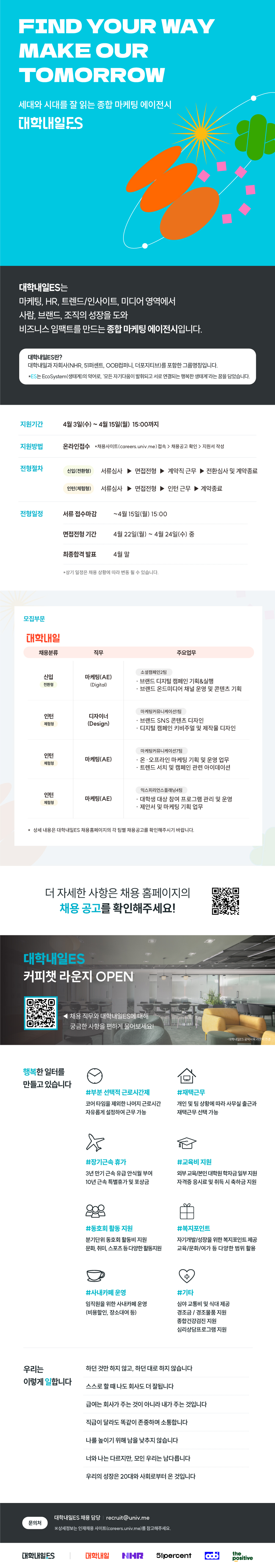 - 일하기 좋은 광고회사 TOP2, 블라인드 일하기 좋은 회사 TOP2 대학내일 1년차 AE의 취뽀 비결은? (링크)