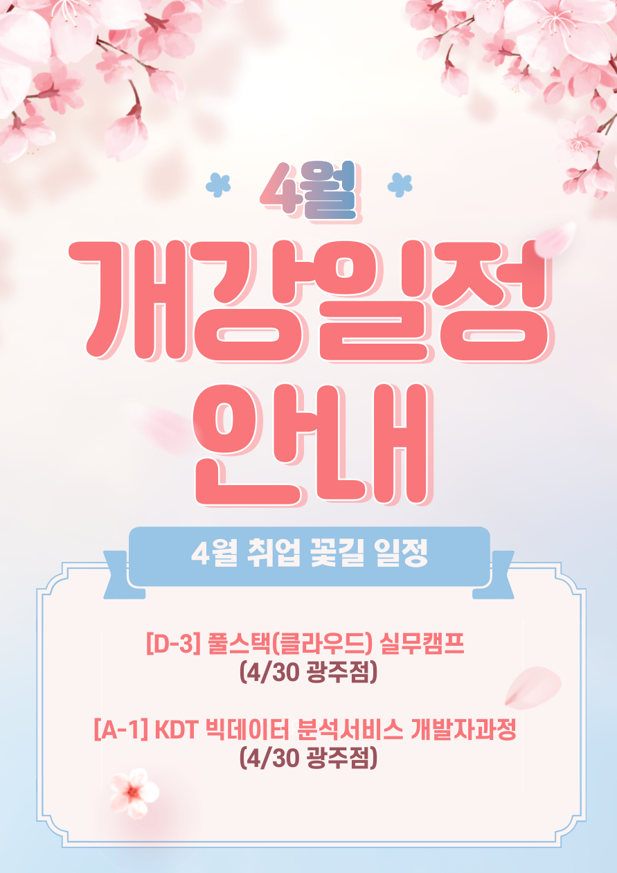 4월 개강 과정 듣고 올해는 꼭 취업하자!!