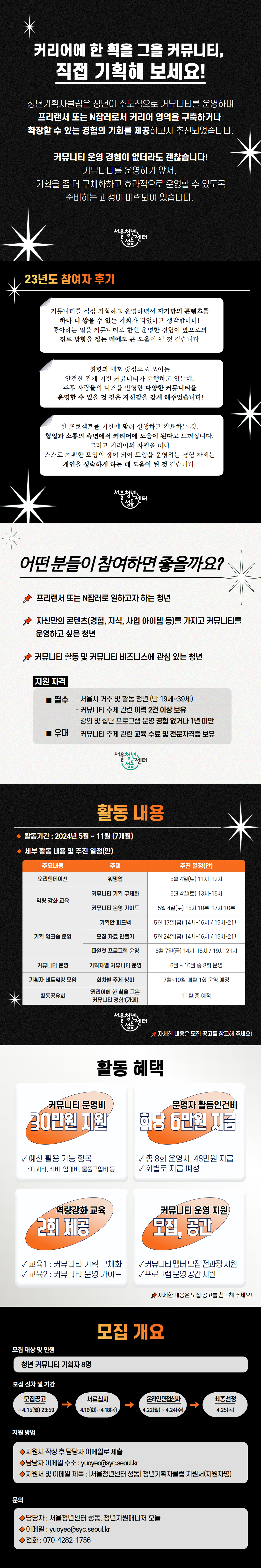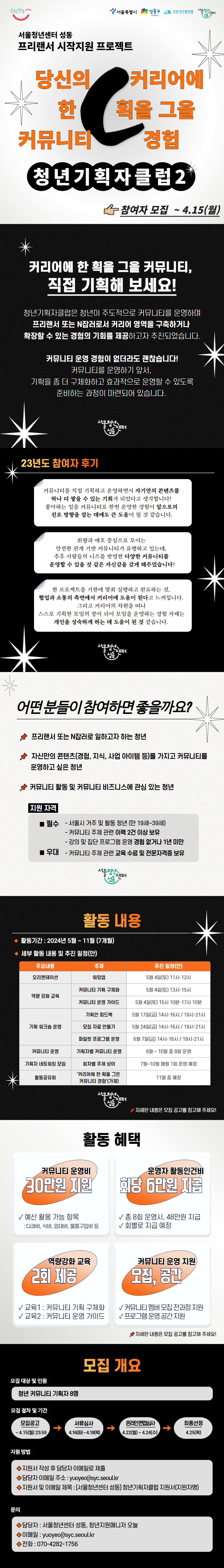 - 지원서 및 메일 제목 : [서울청년센터 성동] 2024청년기획자클럽 지원서 (지원자명)