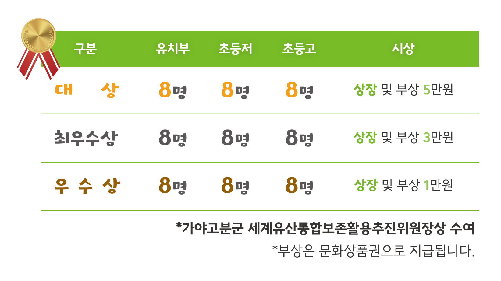 지역별 9명 수상(부문별 1명), 수상자 외 전원 참가상(가야상) 수여!