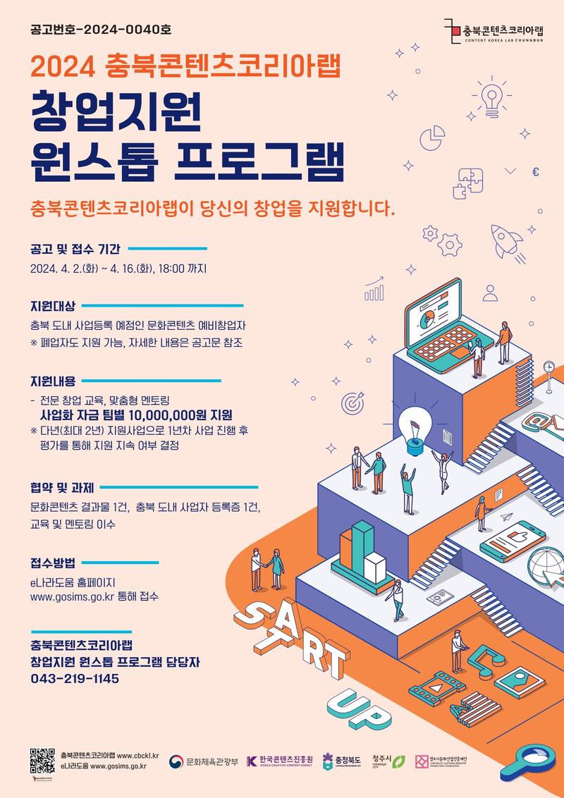 1. 사 업 명: 2024년 충북콘텐츠코리아랩 <창업지원 원스톱 프로그램>