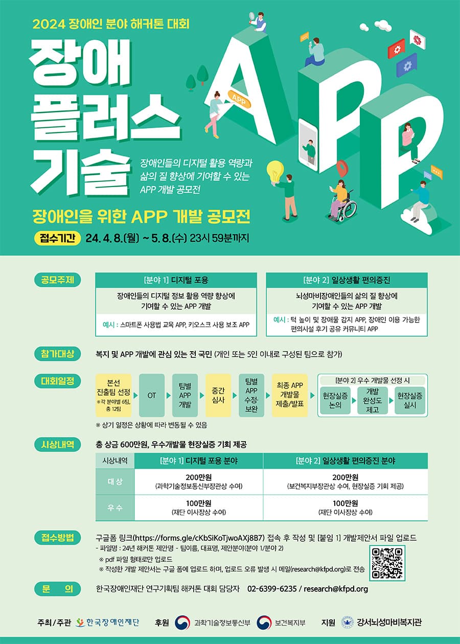 2024년도 장애인 분야 해커톤 대회 : 장애 플러스 기술 “장애인을 위한 APP 개발 공모전”