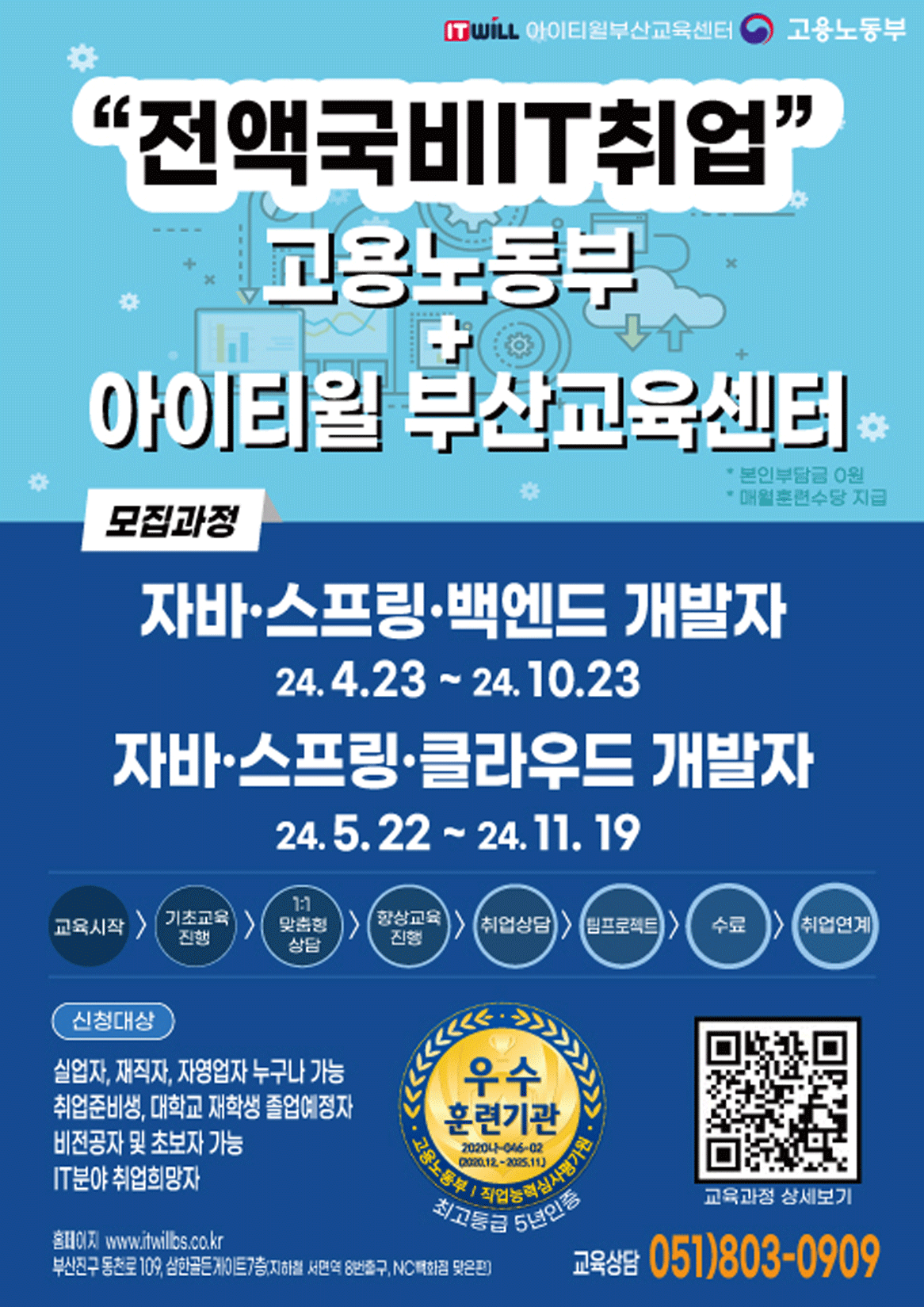 5년 인증 우수훈련기관 아이티윌 부산교육센터