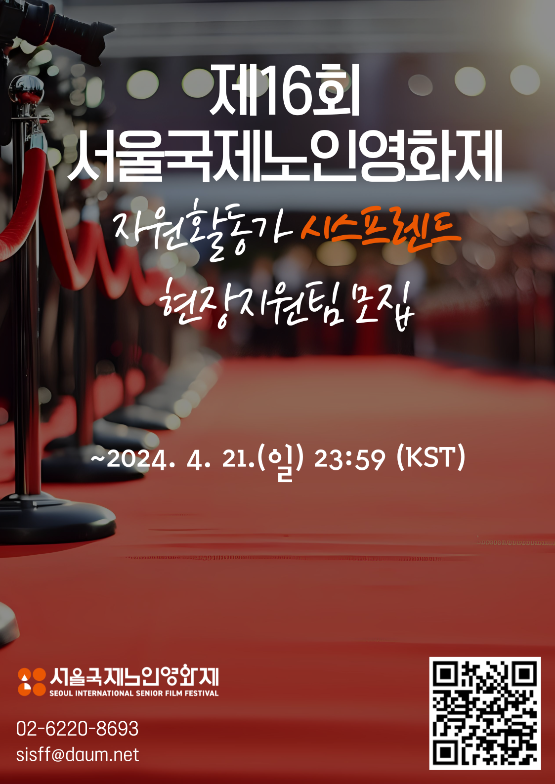 올해 서울국제노인영화제의 현장을 함께 꾸려 갈 에너지 넘치는 시스프렌드를 모집합니다.