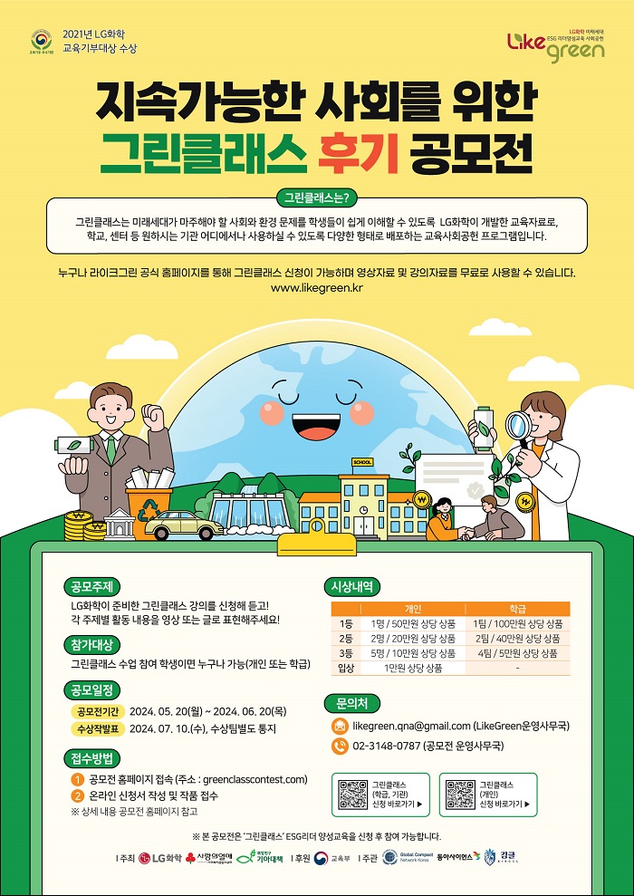 LG화학이 준비한 그린클래스 강의를 신청해 듣고, 각 주제별 활동 내용을 영상 또는 글로 표현해주세요