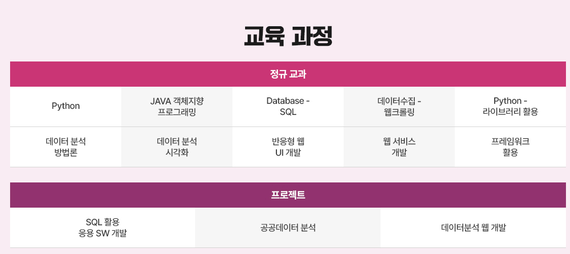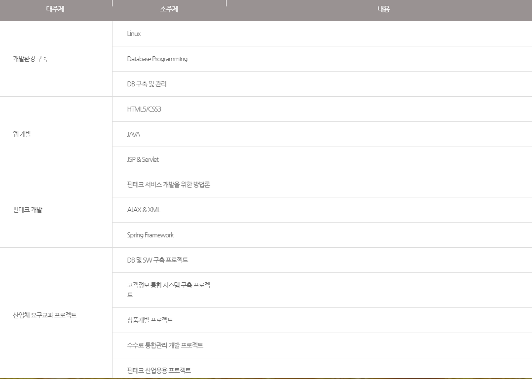 위 국비 과정은 취업반으로 구성되어