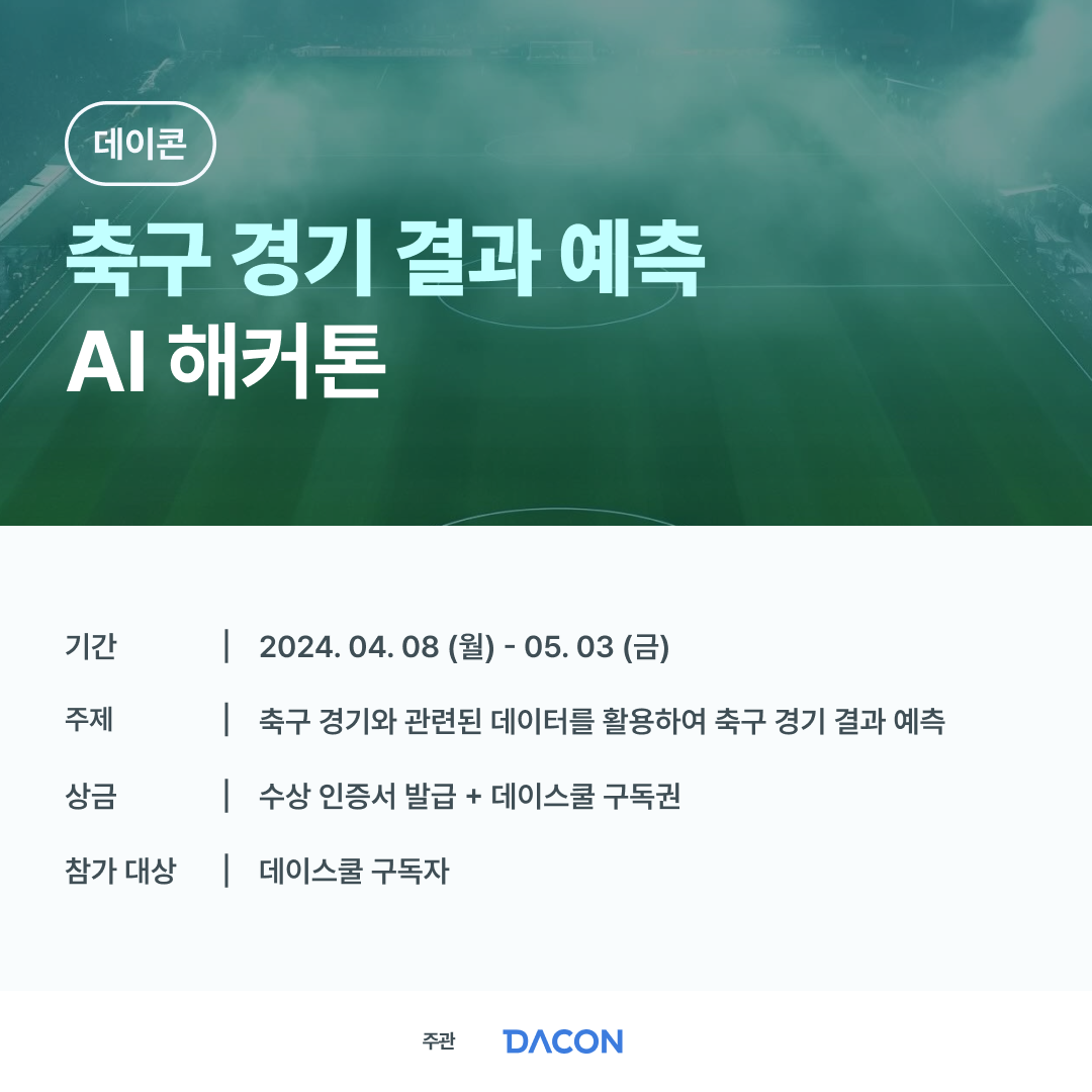 축구 경기와 관련된 데이터를 활용하여 축구 경기 결과 예측