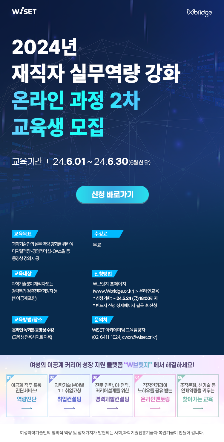 (1) 교육신청 : W브릿지를 통한 온라인 신청(https://www.wbridge.or.kr/)