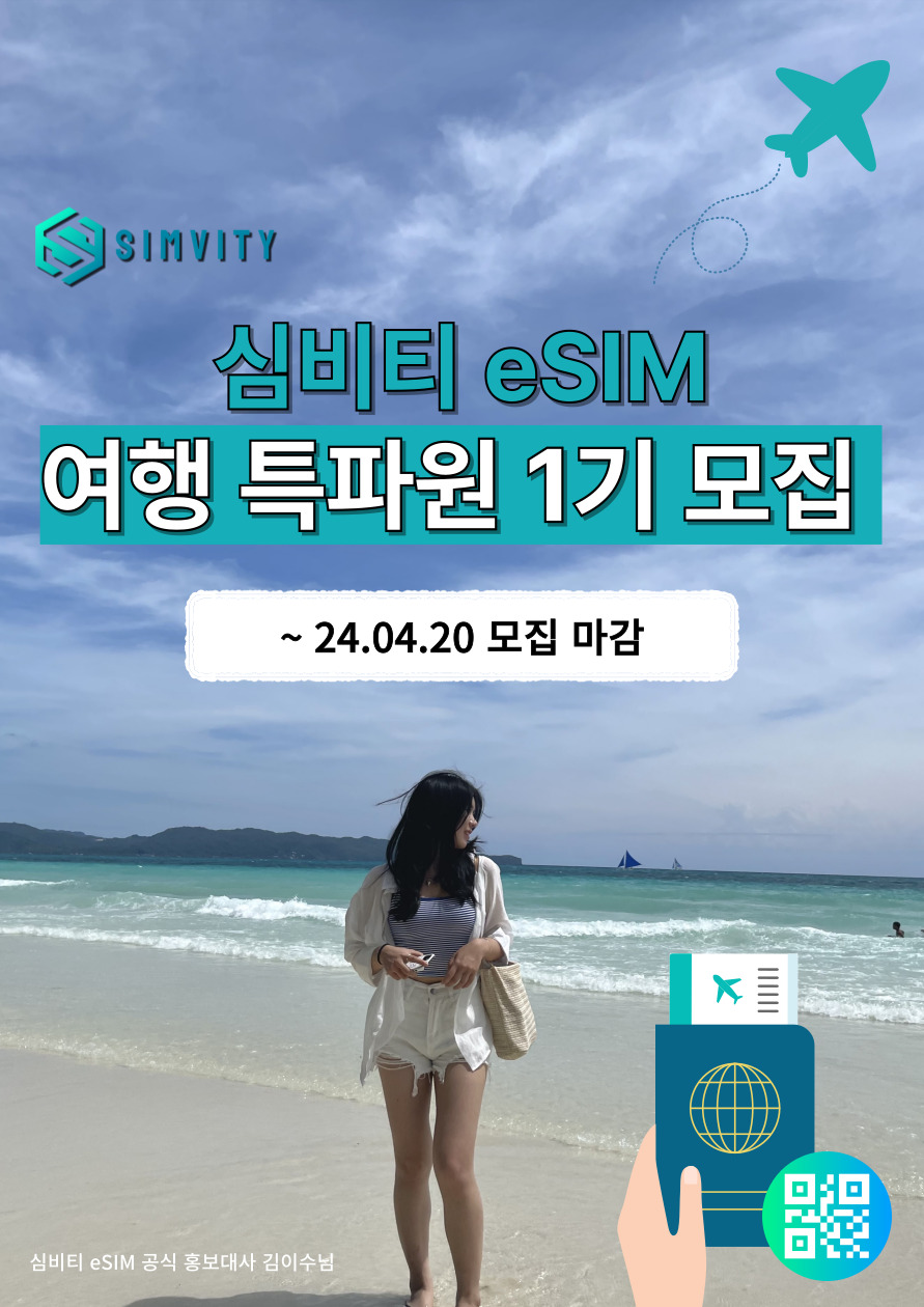 글로벌 eSIM 브랜드 SIMVITY 심비티코리아 eSIM 여행 특파원 2기 모집 (~4/20)