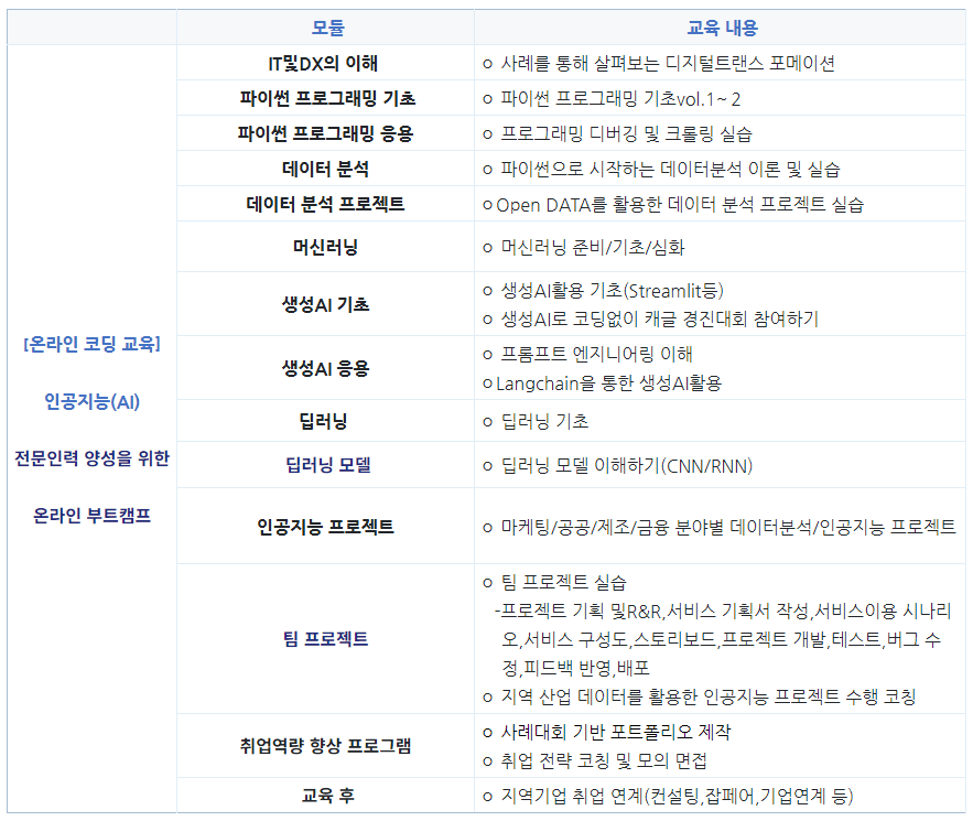 인공지능(AI)전문가 양성을 위한 온라인 부트 캠프