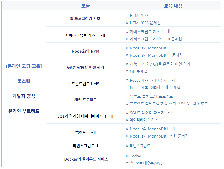 ※커리큘럼 및 교육 일정은 변경될 수 있습니다.