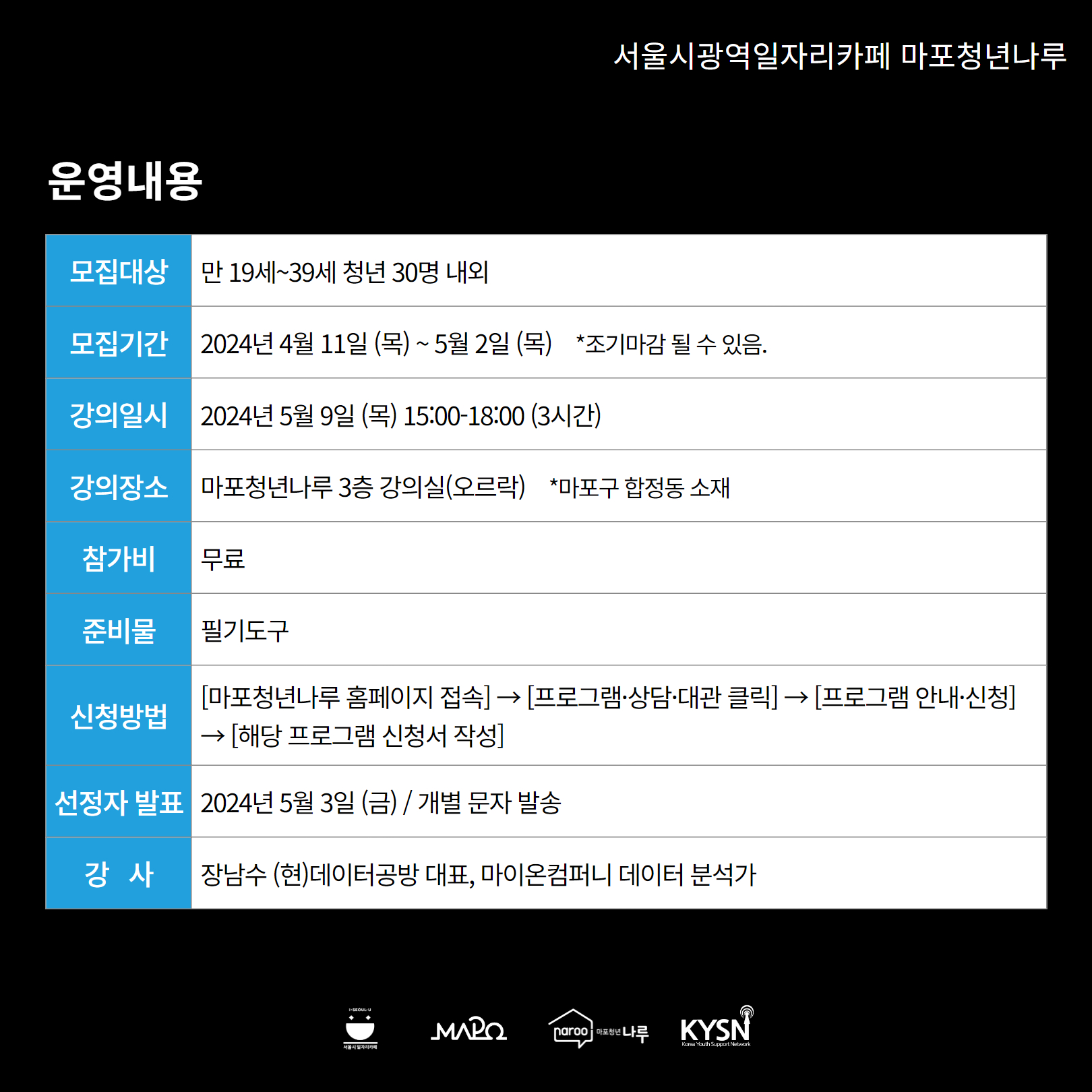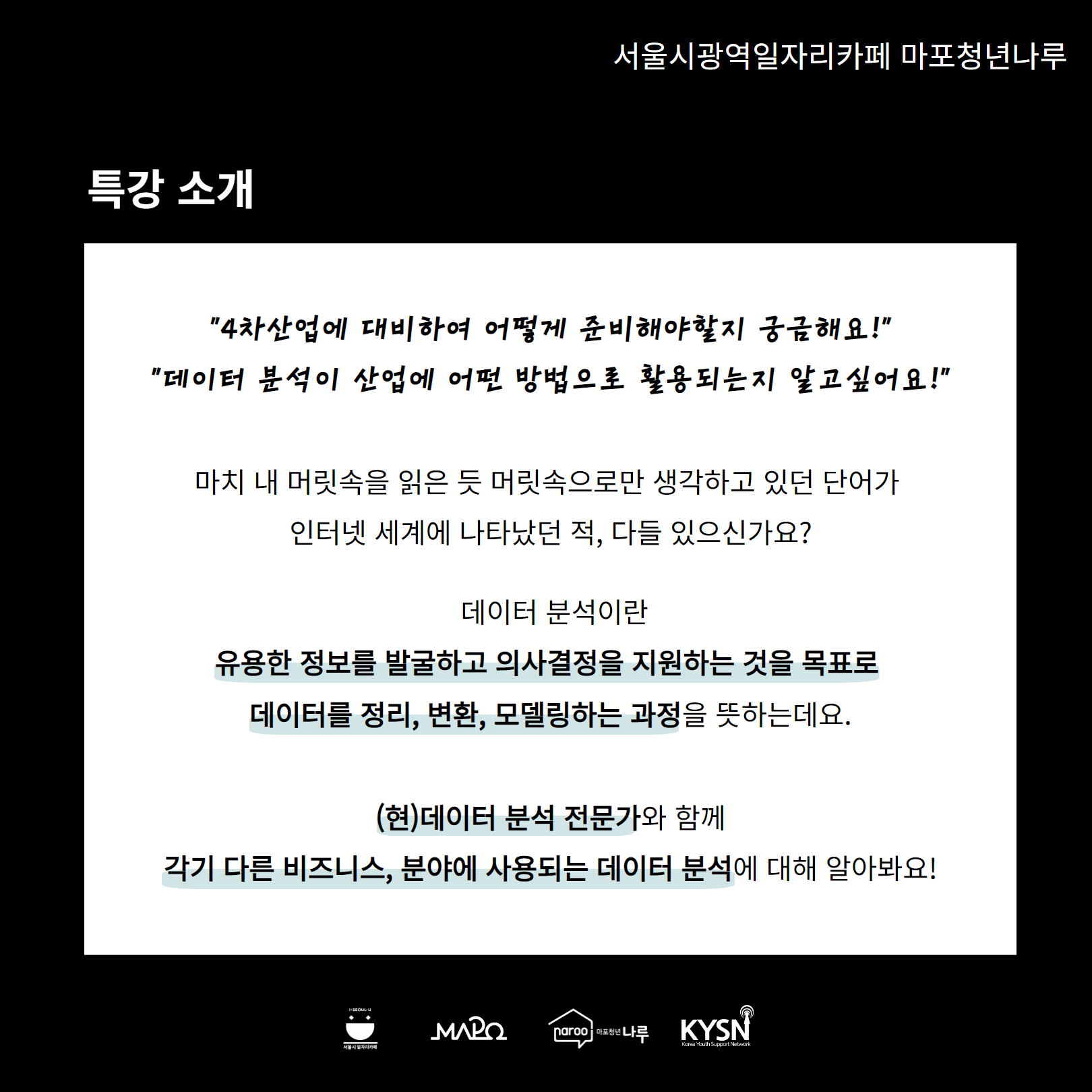 데이터 분석과 인공지능에 관심있는 청년들 모여라!