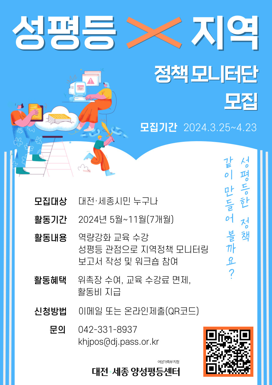 성평등과 정책 모니터링에 관심 있는 다양한 시민의 적극적인 참여를 기다리고 있습니다.
