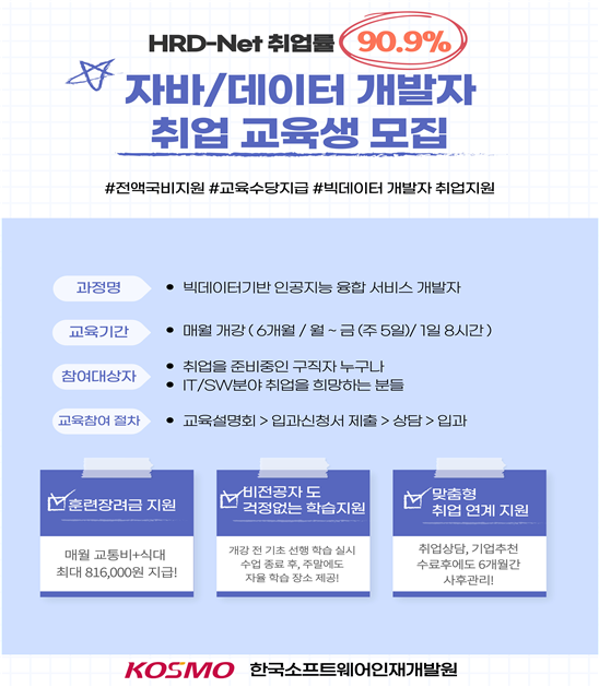 [고용노동부/한국소프트웨어인재개발원] 전액 국비지원 IT무료교육! 취업 맞춤형 무료 교육 받고 개발자로 취업하자!