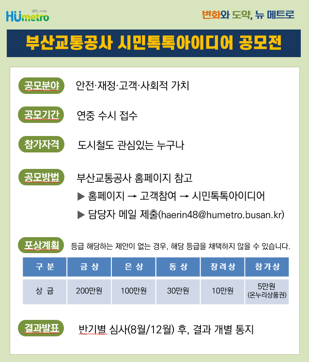 부산교통공사 시민톡톡아이디어 공모전입니다.