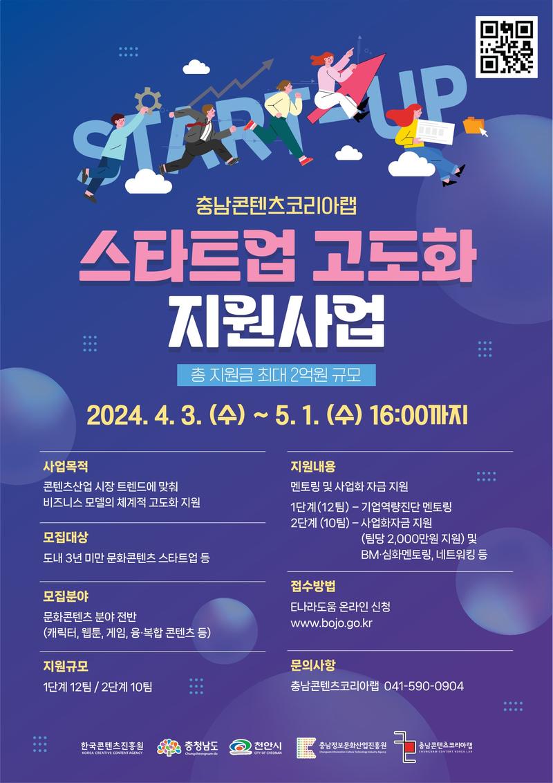 - 충남정보문화산업진흥원 / 충남콘텐츠코리아랩 2024 스타트업 고도화 지원사업