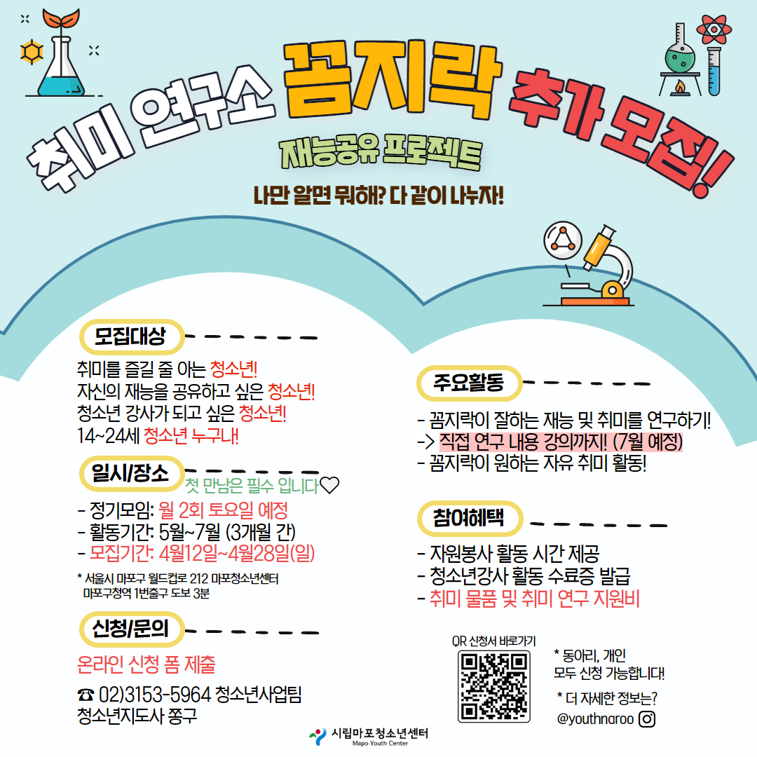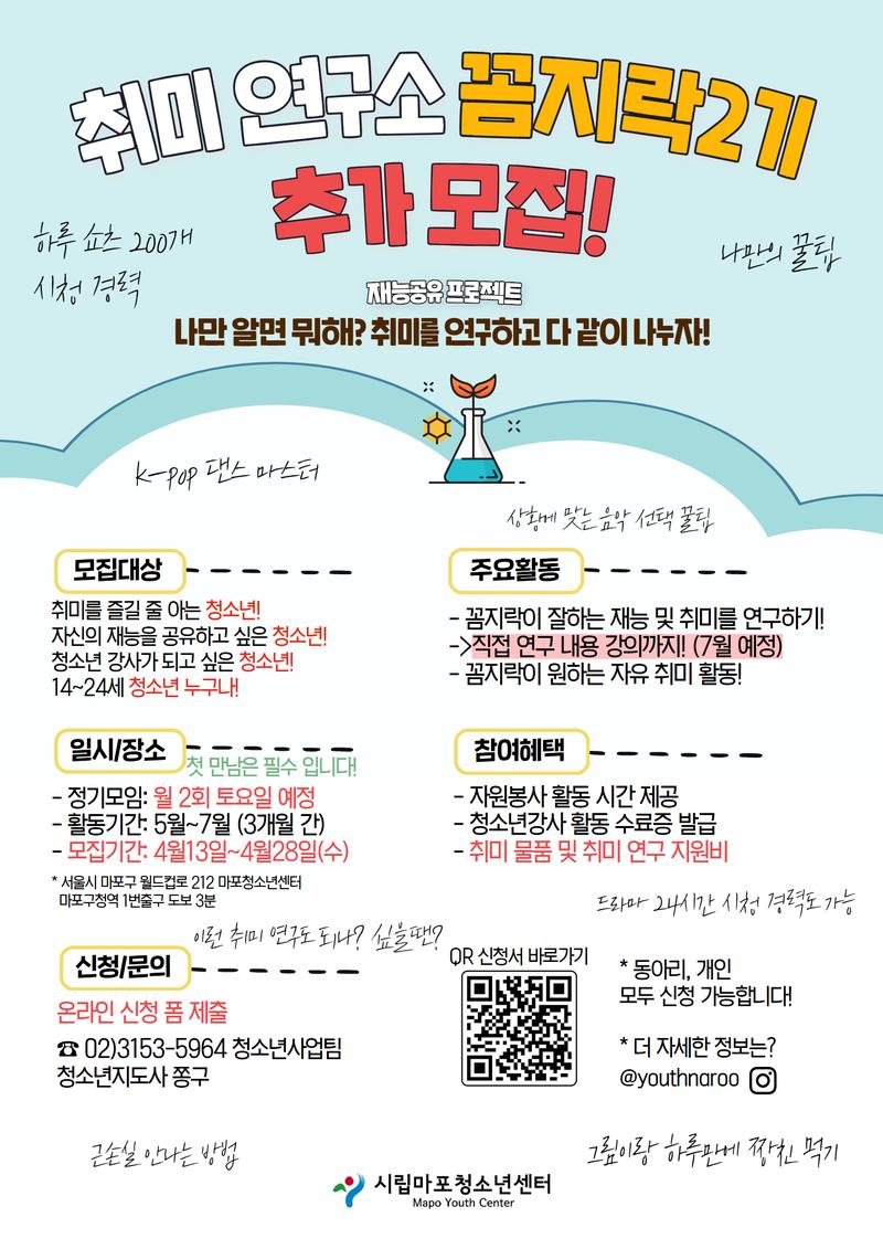 ๐์ทจ๋ฏธ์ฐ๊ตฌ์ [๊ผผ์ง๋ฝ]๐์ด๋ ์ฌ๋ฌ๋ถ๋ค์ด ์ฆ๊ธฐ๋ ์ทจ๋ฏธ ๋ฐ ์ฌ๋ฅ์ ๊ณต์ ํ๋ ์ฐ๊ตฌ์์ด ๋์ด์ ๋ด๊ฐ ์ํ๊ณ ์ข์ํ๋ ์ทจ๋ฏธ, ์ฌ๋ฅํ๋์! ๋งํฌ์ฒญ์๋ ์ผํฐ(์ ์ค๋๋ฃจ)์์ ์ฐ๊ตฌ ๊ฒฐ๊ณผ๋ฅผ ๊ณต์ ํ๋ ํ๋ก์ ํธ์ ๋๋คโจ
