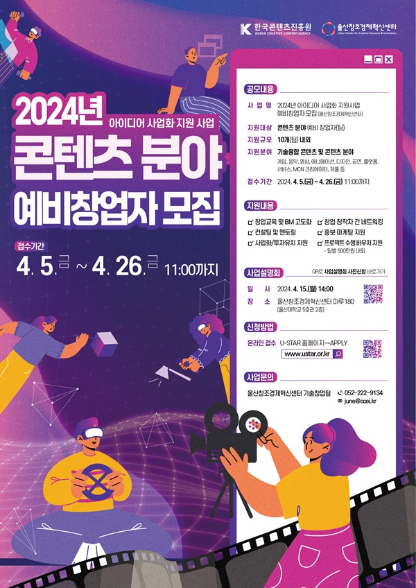 - 사업설명회 : (일시) 2024. 4. 11.(목) 14:00 / (장소) 울산창조경제혁신센터 마루180