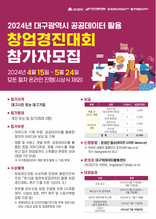 ■ 공 고 명: 2024년 대구광역시 공공데이터 활용 창업경진대회 참가자 모집