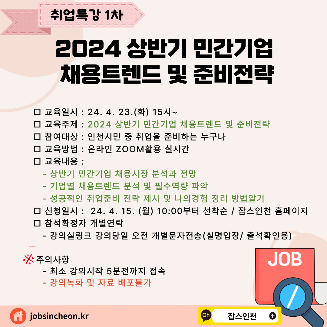 [잡스인천] 취업특강_2024상반기 민간기업 채용트렌드 및 준비전략 특강 모집