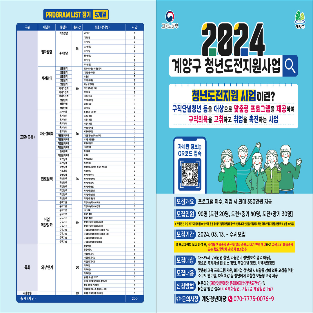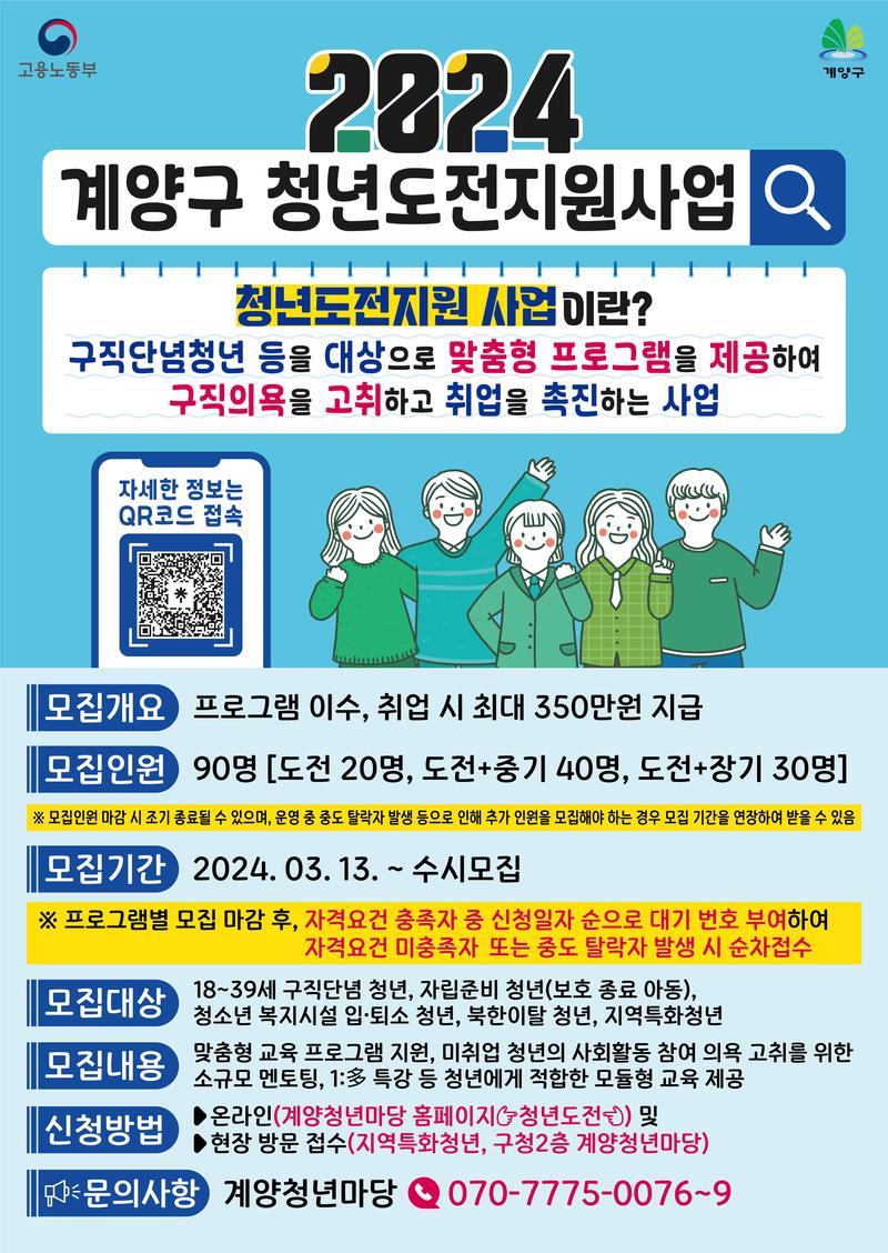 온라인(계양청년마당 홈페이지 ‘청년도전’) 및 현장 방문 접수(지역특화청년, 구청 2층 계양청년마당)