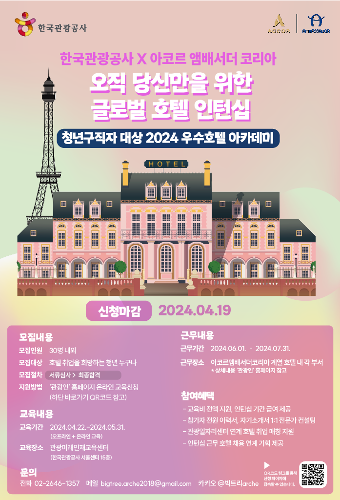 📢한국관광공사, 아코르 앰배서더 코리아와 함께하는 “청년구직자 대상 2024 우수호텔 아카데미” 참여자를 모집합니다!