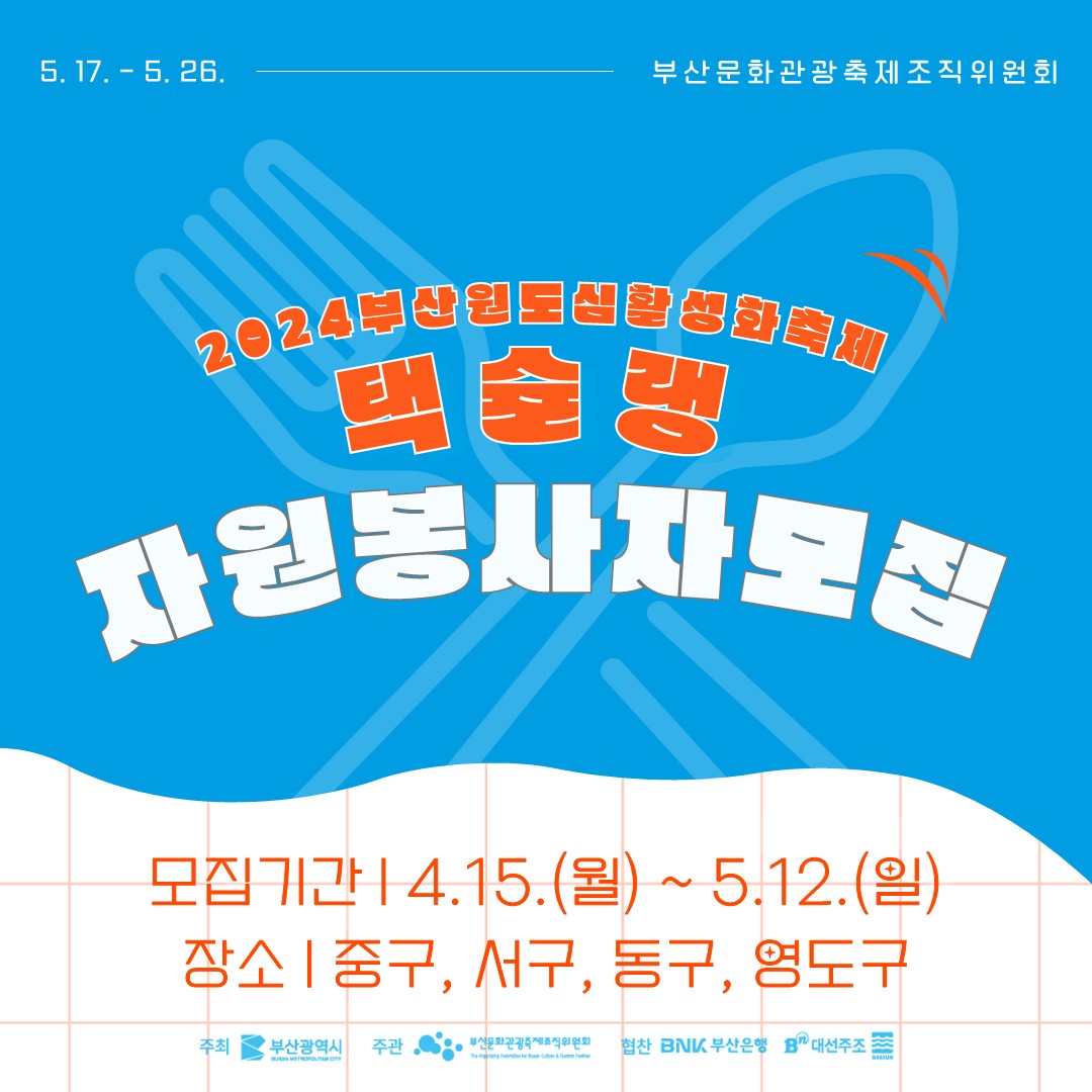 제9회 부산원도심활성화축제 택슐랭 자원봉사자 모집이 5월 12일까지 진행됩니다!