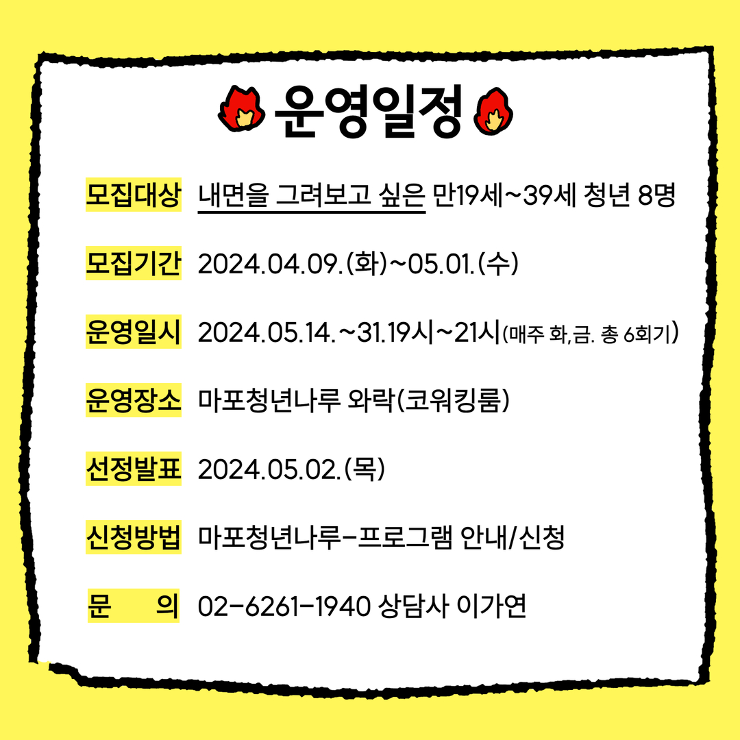 ◎ 신청방법: 마포청년나루 홈페이지 – 프로그램 안내/신청