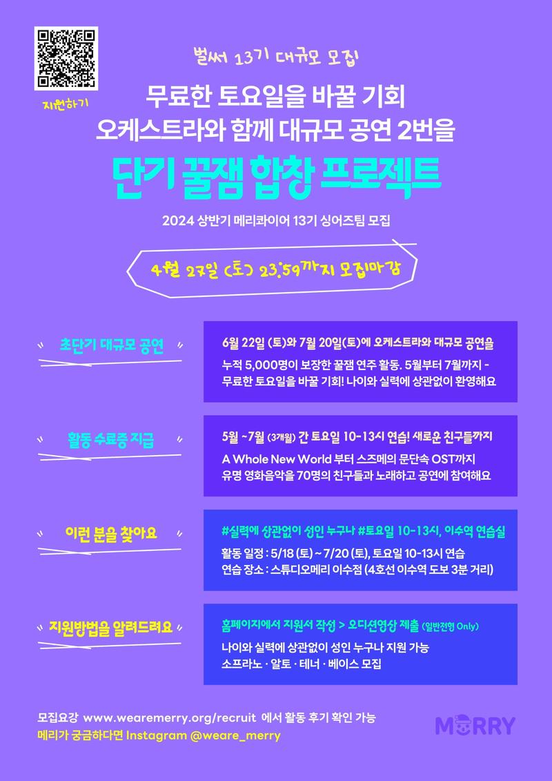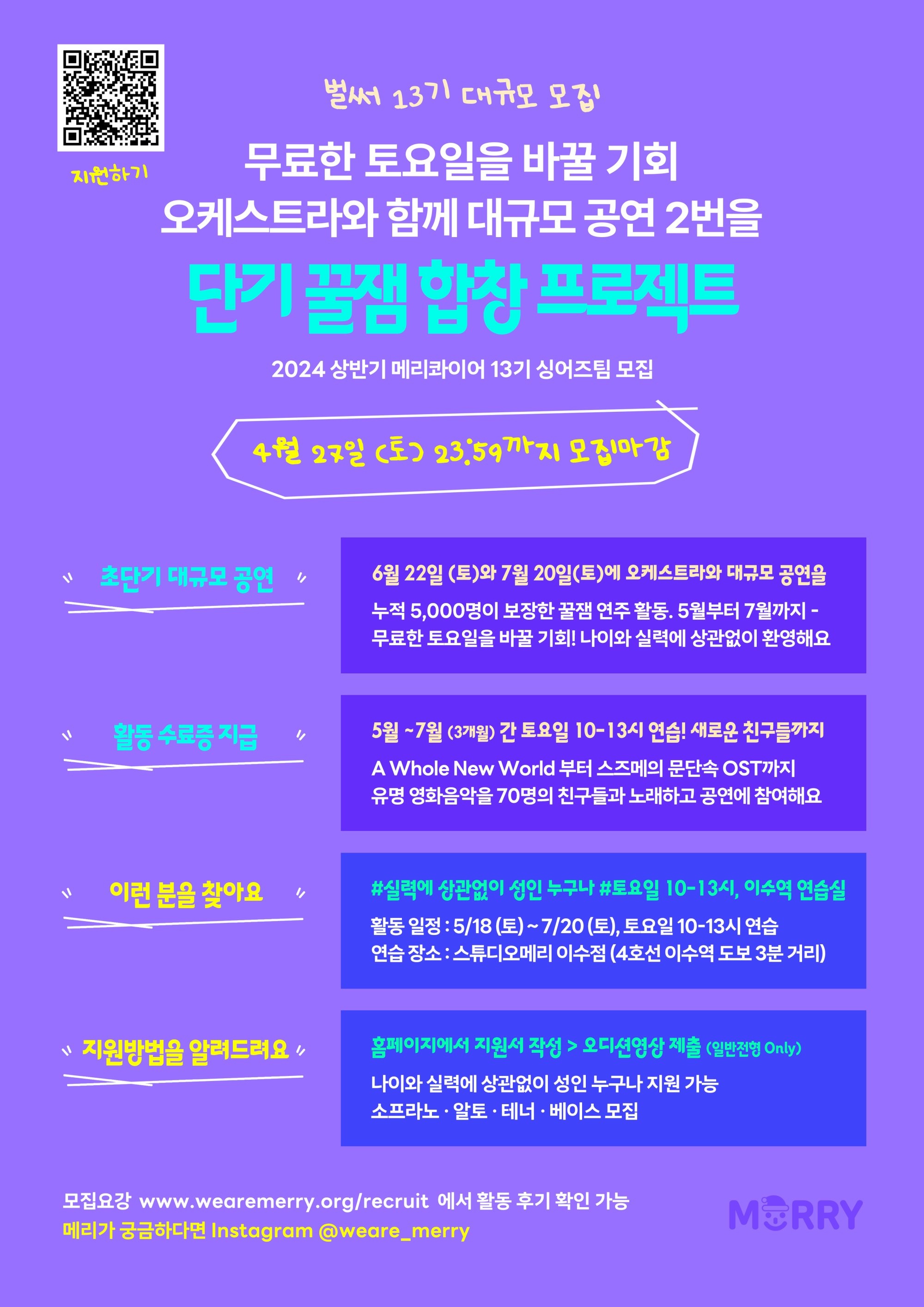 선착순 모집! 메리콰이어 13기 싱어즈팀과 함께