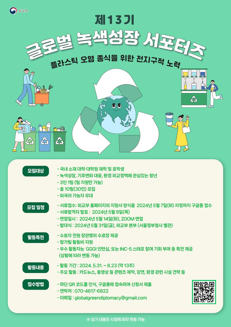 🔸제13기 글로벌 녹색성장 서포터즈 모집🔸