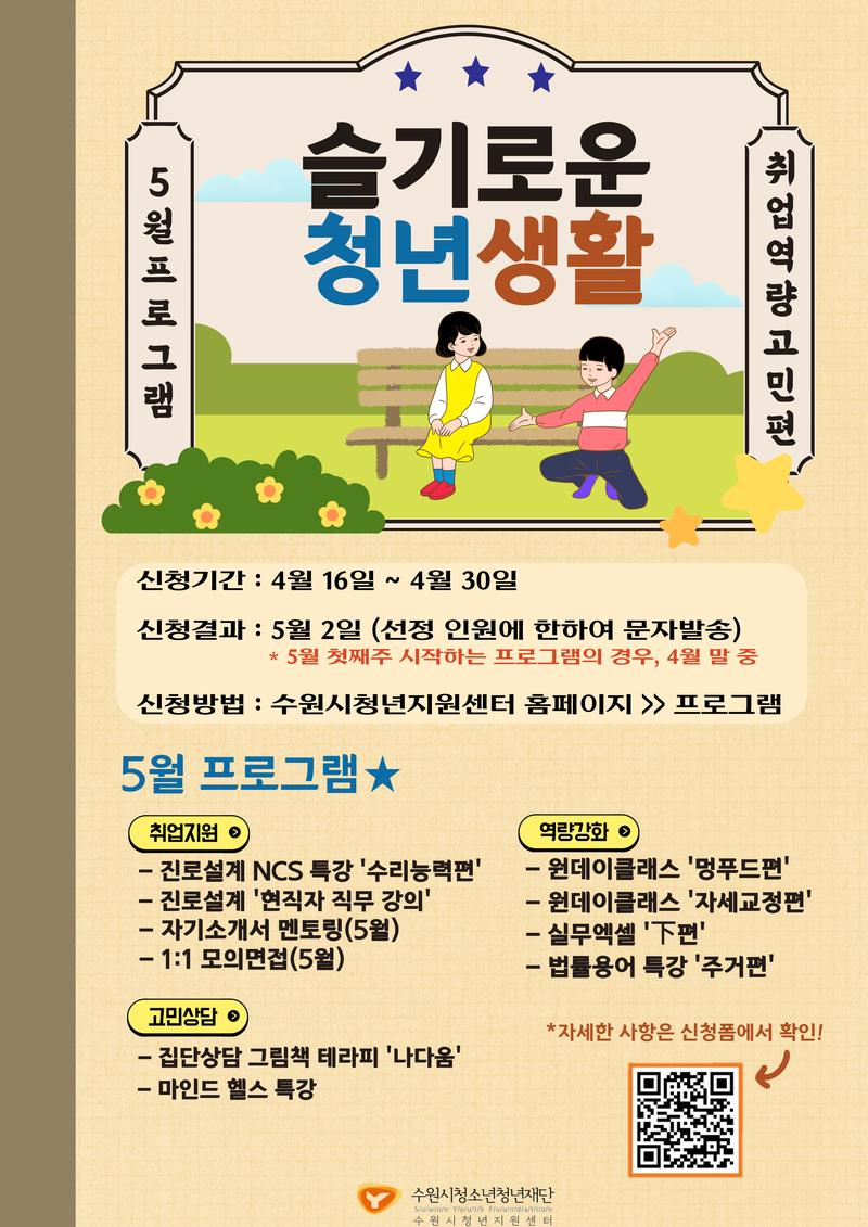 *수원시청년지원센터에서 수원 청년들의 취업/역량/고민의 문제를 지원해주기 위해 진행하는 프로그램입니다.