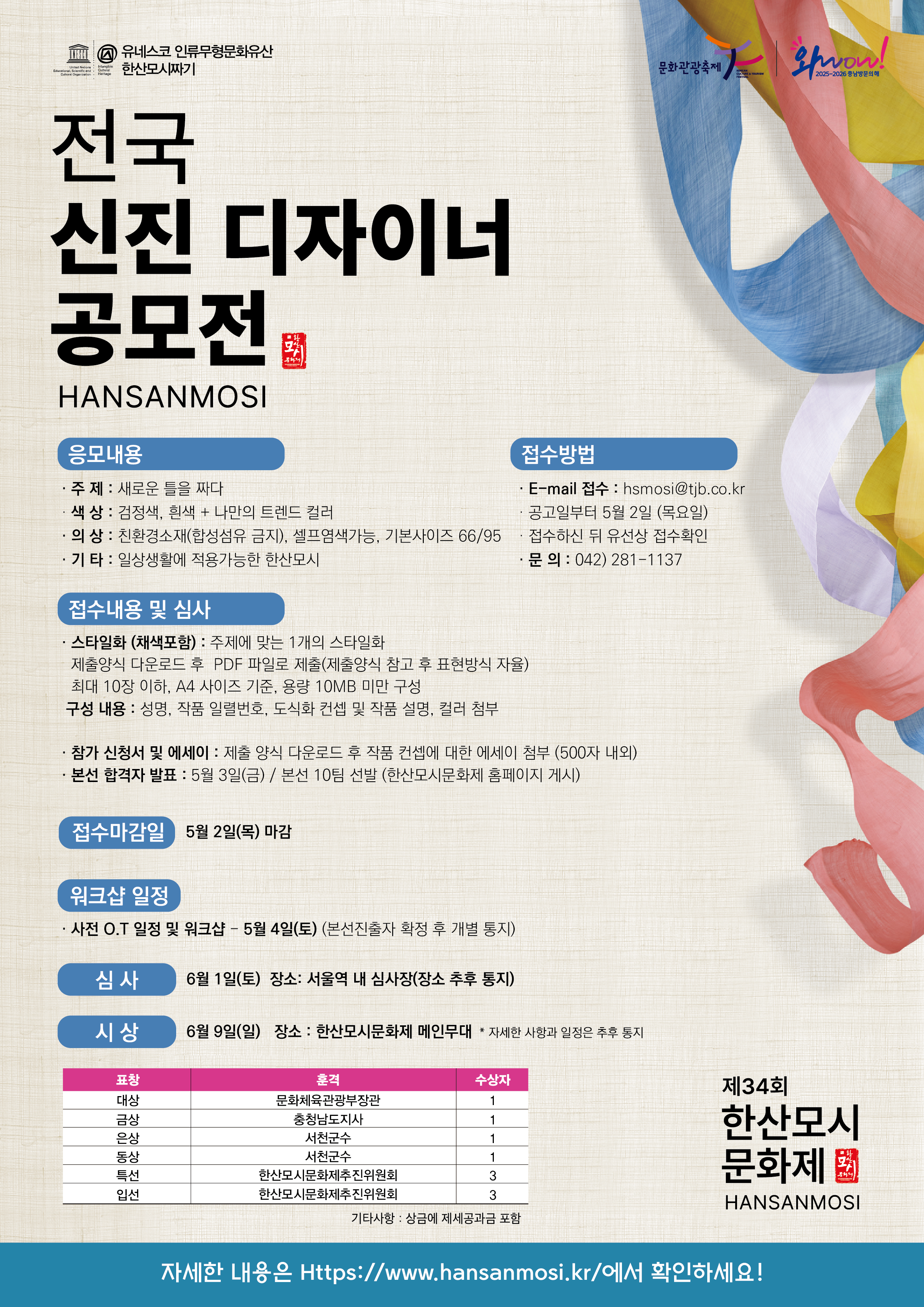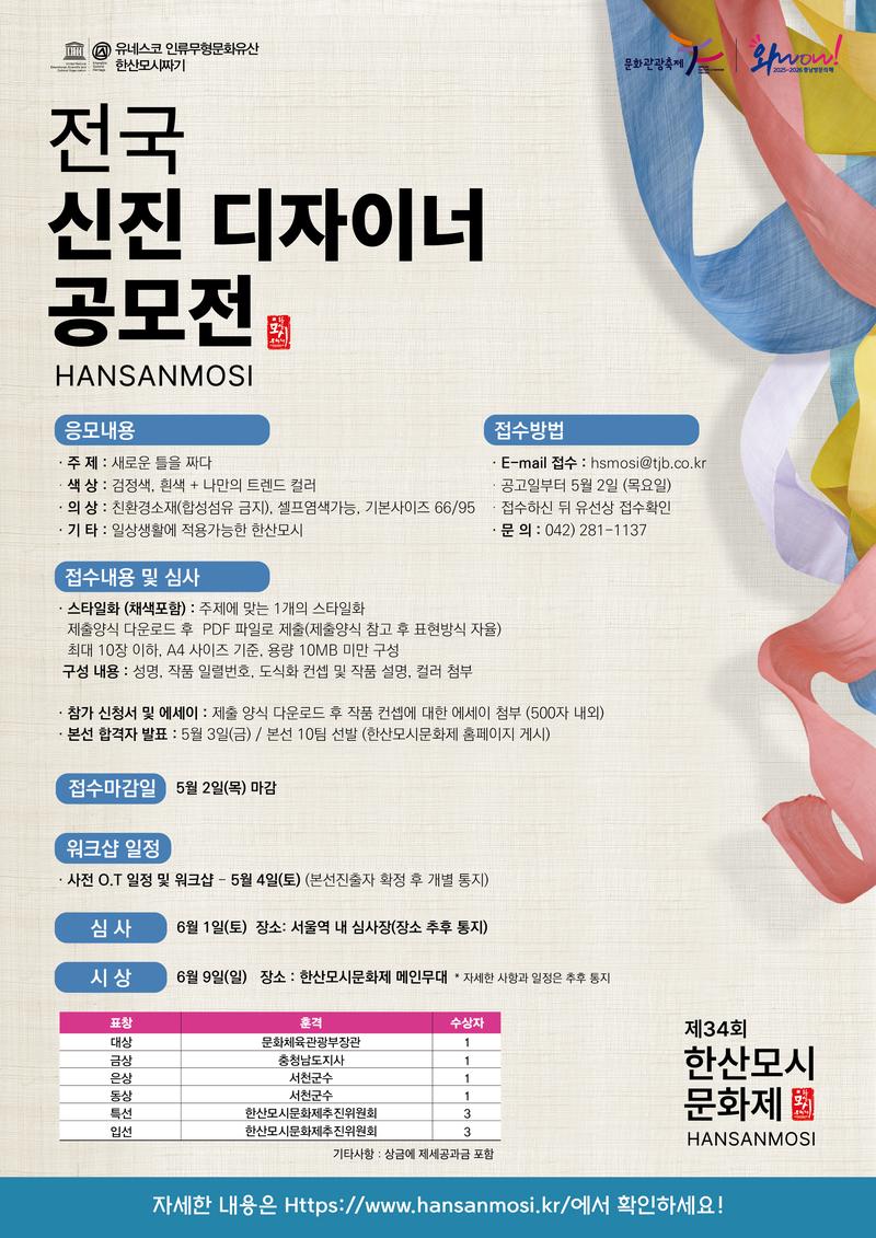 ● 본선 합격자 발표: 5월 3일 (금) [본선 10팀 선발 (한산모시문화제 홈페이지 게시)]