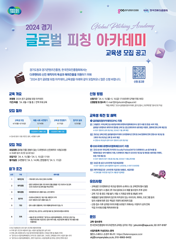 - (교육·접수문의) 한국전파진흥협회 미디어콘텐츠교육팀 김주호 주임