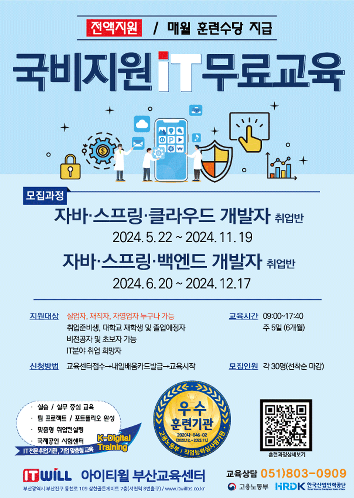 5년 인증 우수훈련기관 아이티윌 부산교육센터