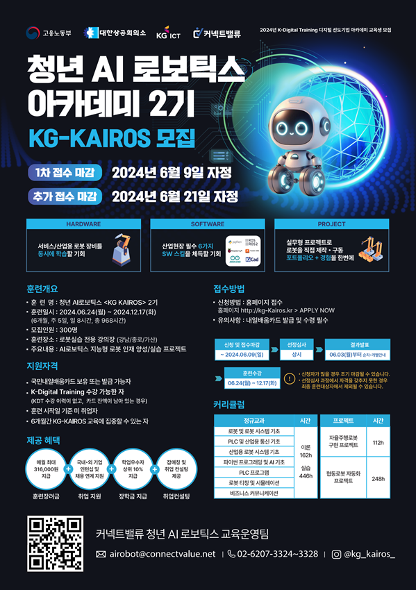 K-디지털트레이닝 국비지원 AI 로보틱스 교육과정, KG카이로스 2기 모집