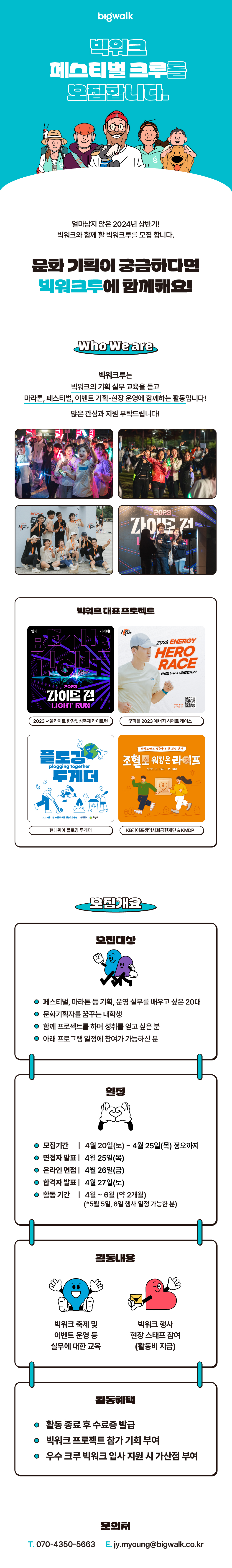 - 빅워크 행사 현장 스태프 참여 (활동비 지급)