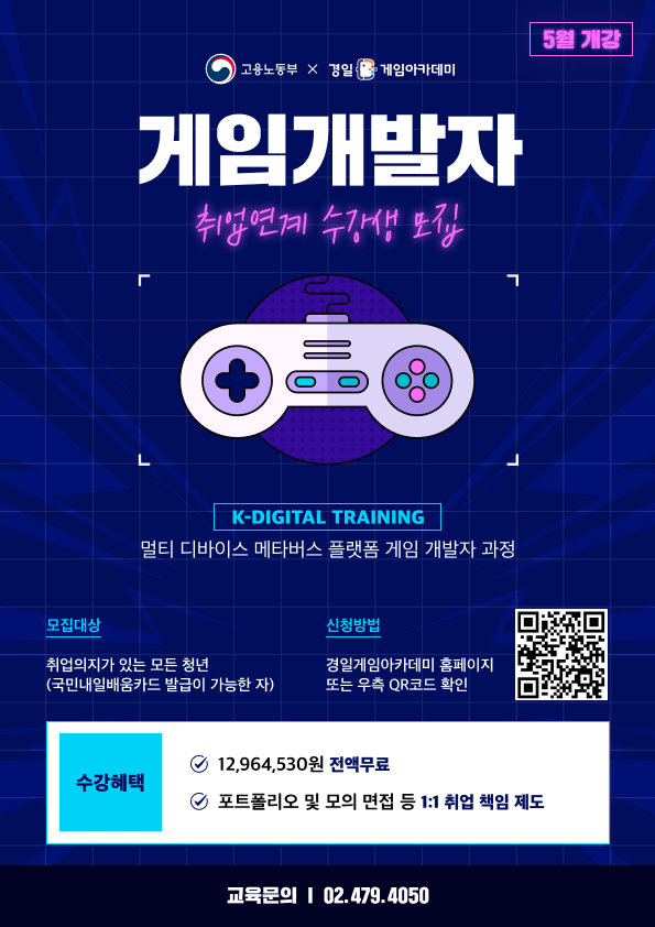 🔥 개발자로서의 꿈을 향해 함께해요! 멀티 디바이스 메타버스 플랫폼 게임 개발자 과정, 전액무료! 5월 개강!