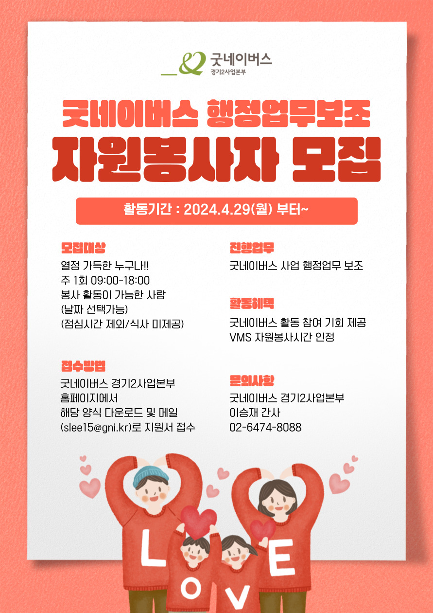 굿네이버스 경기2사업본부에서 자원봉사자를 모집합니다!