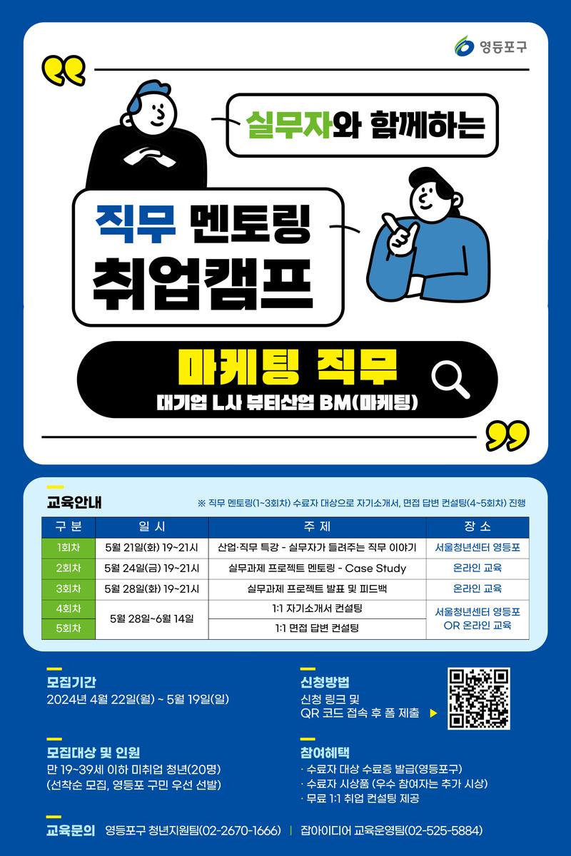[영등포구] 실무자와 함께하는 직무 멘토링 취업캠프(마케팅 편) (~5/20, 선착순 모집)