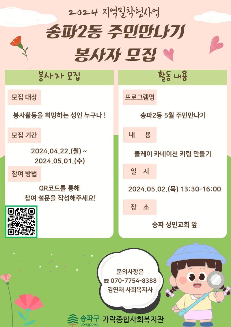 ★2024 지역밀착형사업 송파2동을 잇다 '주민만나기' 봉사단 모집★