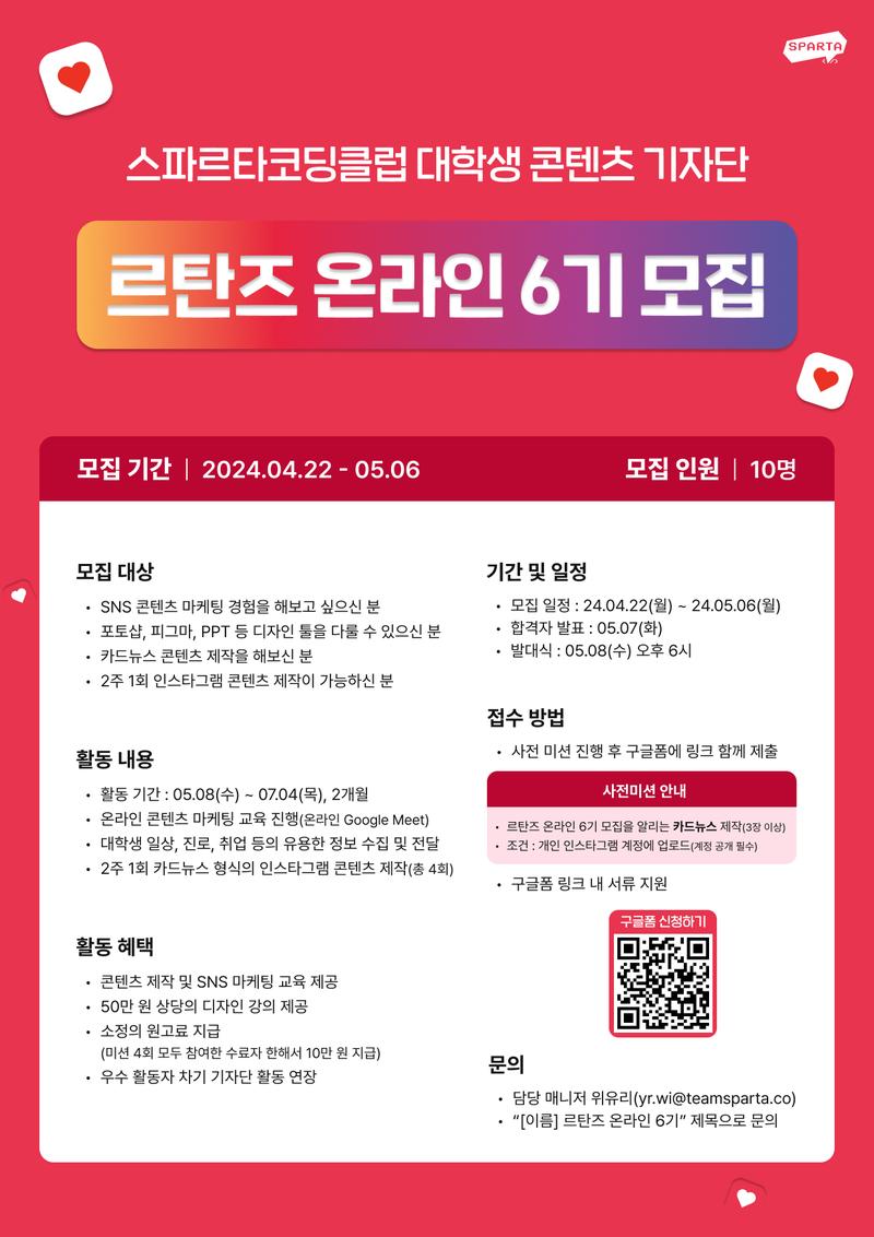 - 모집 일정 : 2024.04.22(월) - 2024.05.06(월)