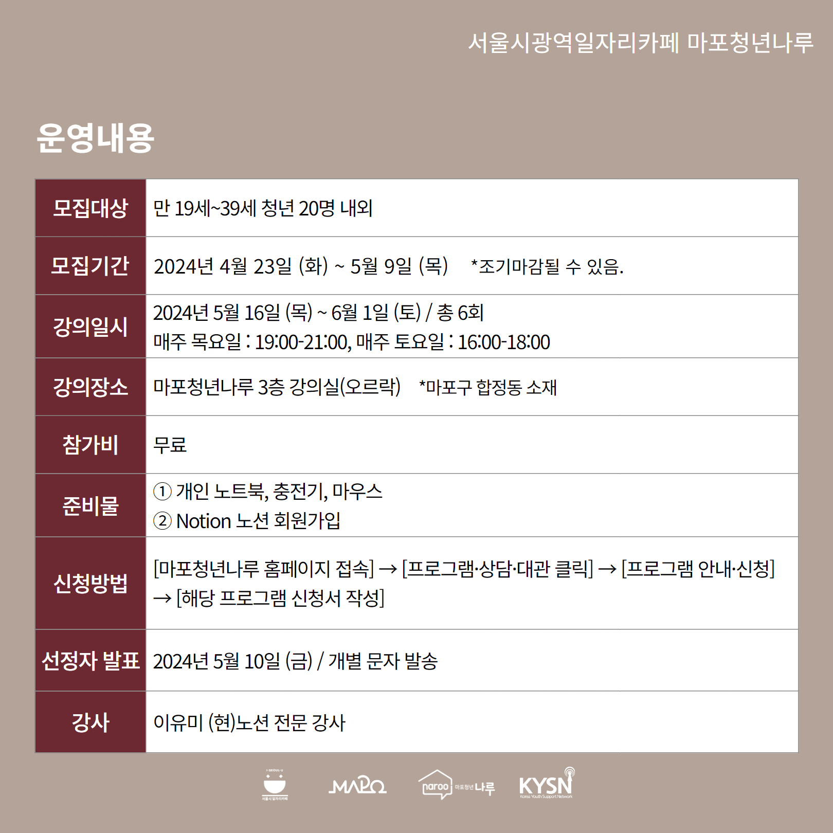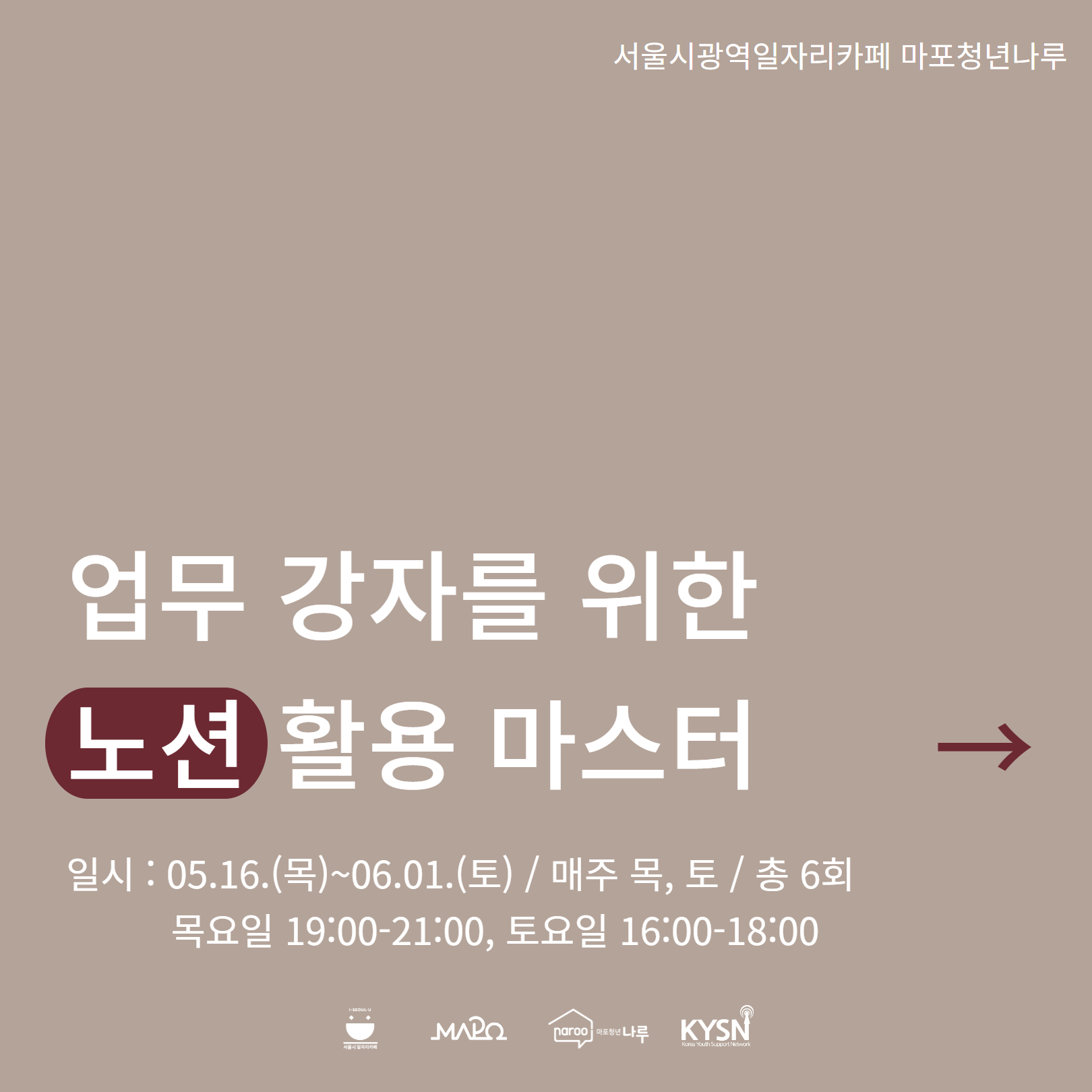 ✰ 일시: 5/16(목) ~ 6/1(토) 매주 목요일 19:00-21:00, 매주 토요일 16:00-18:00 / 총 6회