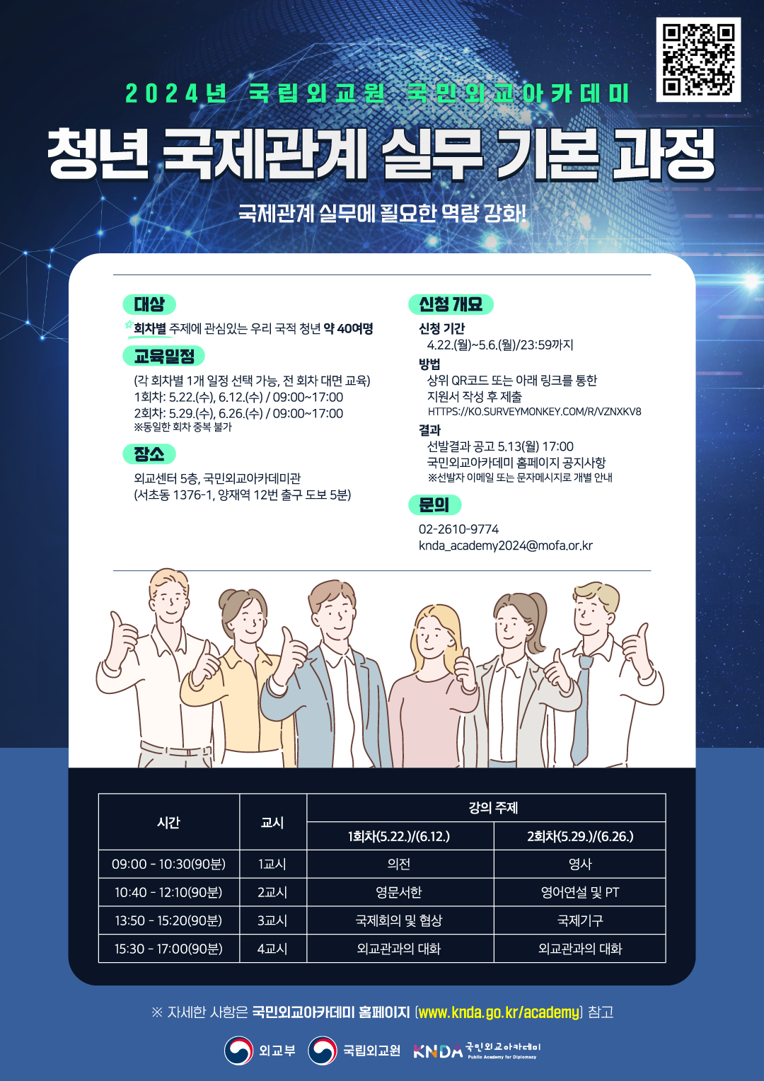 - 결과 발표: 5.13.(월) 17:00pm(국민외교아카데미 홈페이지 참고)