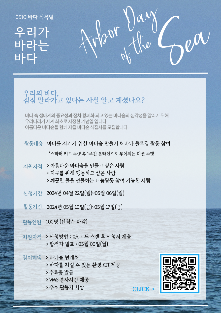 바다 식목일 기념 환경 보호 캠페인 '우리가 바라는 바다' 참여자 모집
