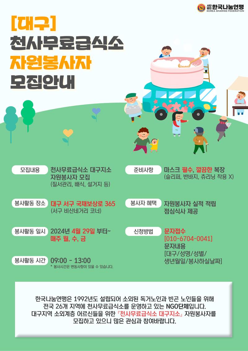 -봉사장소 : 대구 서구 국채보상로 365(서구 비산네거리 코너)