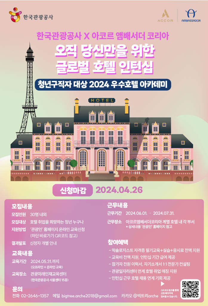 ●한국관광공사, 아코르 앰배서더 코리아와 함께하는 “청년구직자 대상 2024 우수호텔 아카데미” 참여자를 모집합니다!