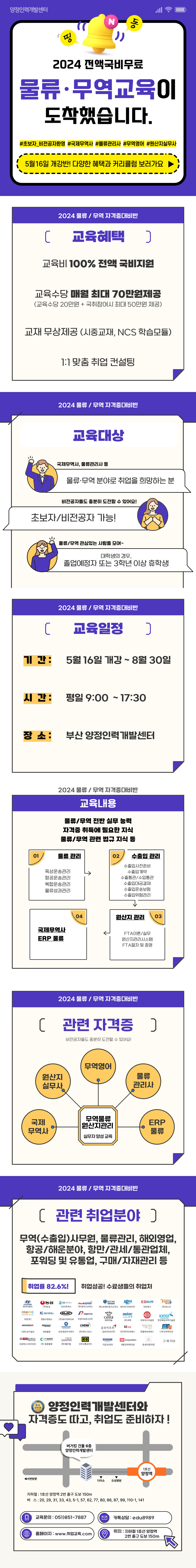 [부산/물류·무역취업] 전액국비무료+매월70만원 교육수당 제공! 물류/무역 취준생 모집