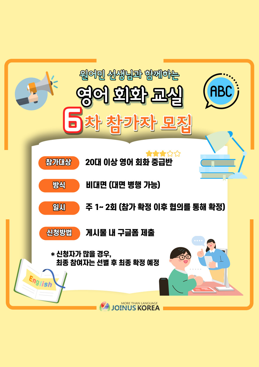 🔥 신청 및 전체 공지 안내 : https://bit.ly/jk-nativeeng6th